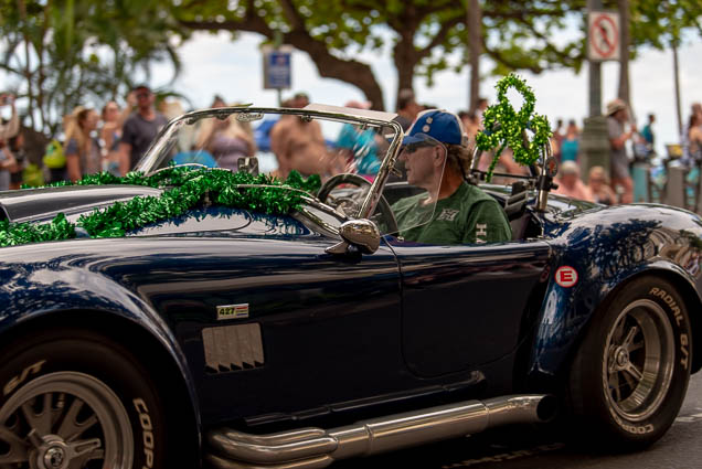 The duration of the procession as it passed by was just under twenty minutes. Other participants at the 2020 Honolulu Saint Patrick’s Day Parade include trolleys from Kelley O’Neil’s pub, Anna O’Brien’s Irish pub, the Irish Rose Saloon; Hawaii Self Storage was there, as were numerous exhibit cars, including vintage Volkswagen vehicles of different colors, a DMC DeLorean car (made famous by the Back to the Future movie), Corvette vehicles, appearances by Miss Jameson Hawaii and Miss St Paddy’s Day, Miss Hawaiian Travel 2022, a marching band from Lakeville South High School (LSHS) from Lakeville, Minnesota, a truck from Proper Twelve, and appearances from Knights of Equity Supreme Historian and Dr. Anton Anderssen